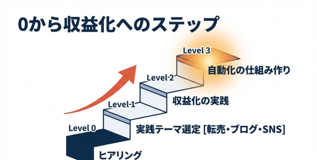 まずは「何を実践して稼ぐか」を一緒に決めていきます。