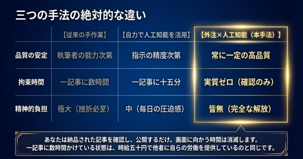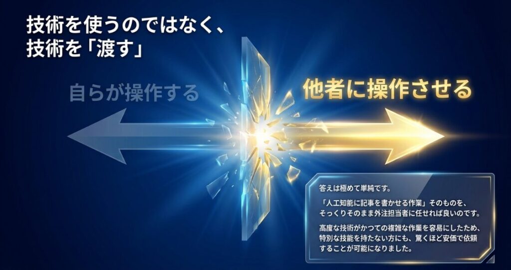 「AIを使った記事作成の仕組み」を外注さんに渡し、