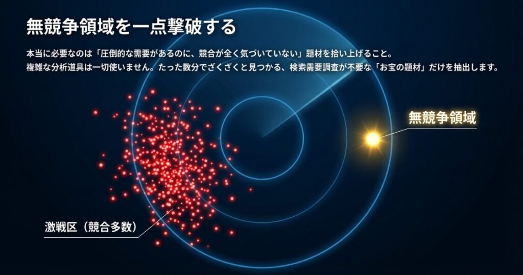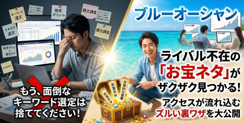 という、ブルーオーシャンなお宝ネタがザクザク見つけるズルい裏ワザを大公開します。