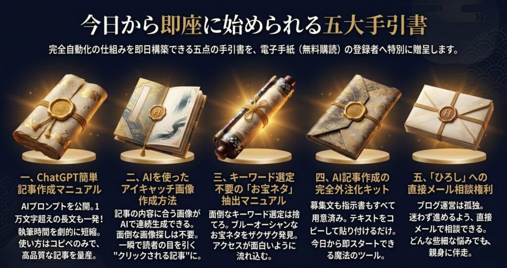 完全放置で稼ぐための『豪華5大特典』を無料で受け取ってください!!
